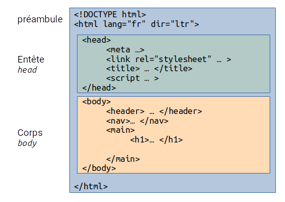 - préambule qui décrit la grammaire de la page et comment le document devra être interprété par le navigateur